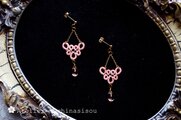 トライアングルのタティングレースのモチーフがシャープな印象ですが、チェーンで繋いでチェコビーズがゆらゆら揺れるさまは愛らしさ抜群です。