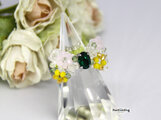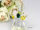 スワロエメラルド・花柄リボンリング(スワロ ビーズリング)《ビーズアクセサリー》