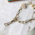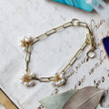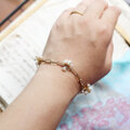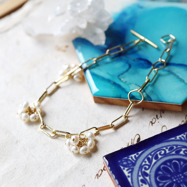 抜け感のあるチェーンに小さなお花のようなパールが揺れる、シンプルなブレスレット。