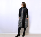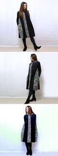中厚のブラック無地コットンと美しい手描き模様に刺し子アクセントとのあるグレーコットンを縦にパッチワークした個性的な作りです。