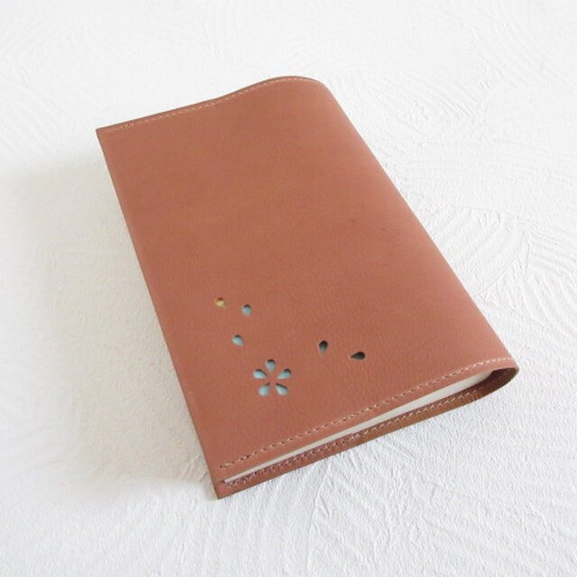 文庫本サイズ《ゴートスキン》ライトブラウン「HANABIRA」ソフトシュリンク・一枚革のブックカバー・0806