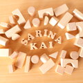 ローマ字のお名前と積み木がセットになっています。(お名前の文字数により積み木の数が異なりますので予めご了承くださいませ)