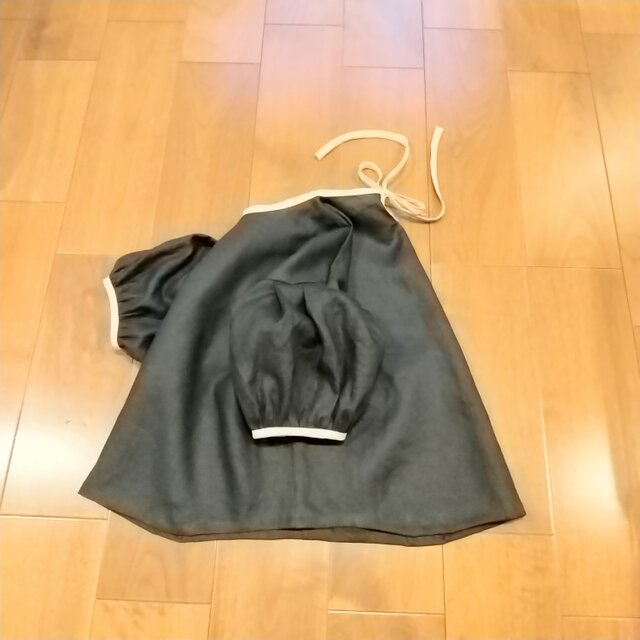 ダーク生成りでパイピングして、後ろリボンにしました。