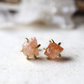 原石の形をそのままに真鍮の四本爪でラフに留め、シンプルなピアスにしました。
