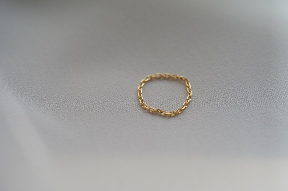 着け心地も軽やかな18KYGチェーンを使用したチェーンリング。