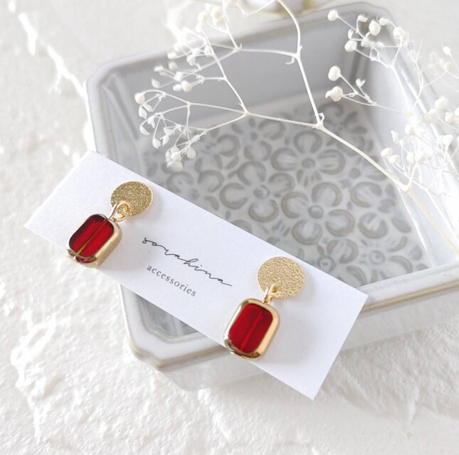 ゴールド✕赤のガラスのシンプルなアクセサリーです。