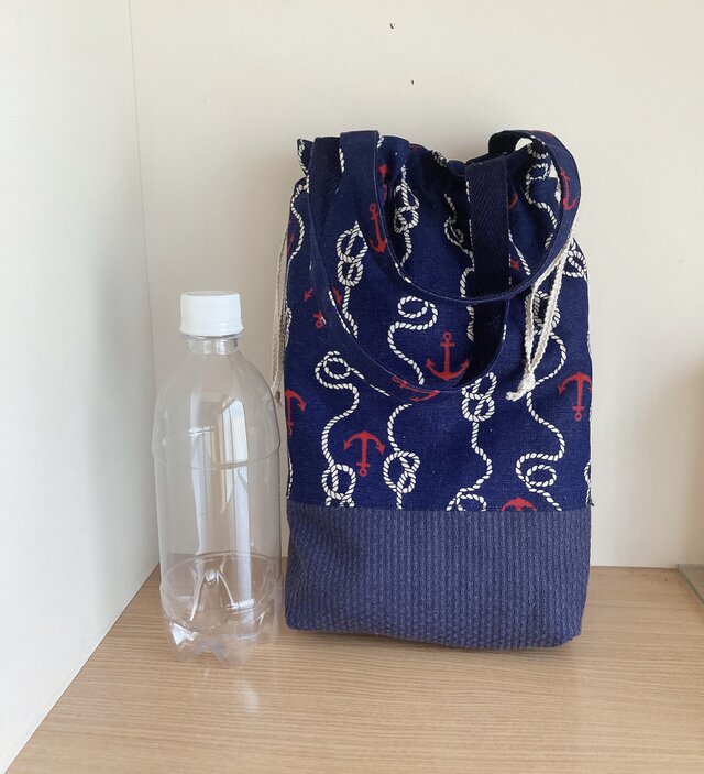 保温保冷シート付き巾着型エコバッグ(マリン・ネイビー)