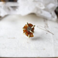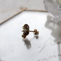 ミニサイズの耳たぶに納まる大きさが可愛い化石を、真鍮の爪で有機的に留めてピアスにしました。