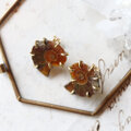 化石を半分にスライスした一対を、真鍮の爪で有機的に留めてピアスにしました。