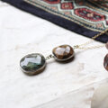 石の表面は細かいカットが施されており、胸元で揺れて輝きます。