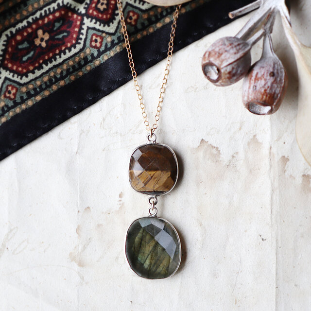 素材:タイガーアイ・ラブラドライト・シルバー(石枠)・K14ゴールドフィルド(チェーン)