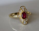 シンセティックで宝石を楽しみたいと思いこちらの作品に辿り着きました。 ルビーもエメラルドも写真で想像していたより大ぶりで濃く美しい色合いで感動しました。デザインもレトロな雰囲気が可愛くて石に合っていてとても素敵です。大事に使わせていただきます。