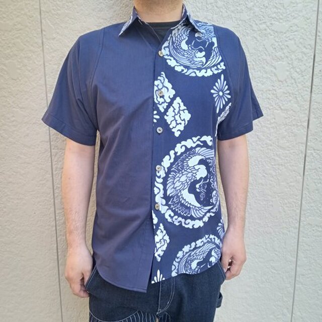 型染め手ぬぐいシャツ(鳳凰紋)半身無地