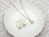 コットンパールのシンプルなデザインの一粒パールネックレスとピアス/イヤリングのセットです。