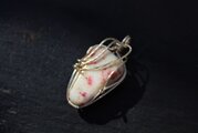 日本では、まだあまり知られていないシンナバイト。白地に赤い斑点が美しいタンブルをシルバーのワイヤーで巻きました。