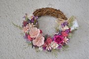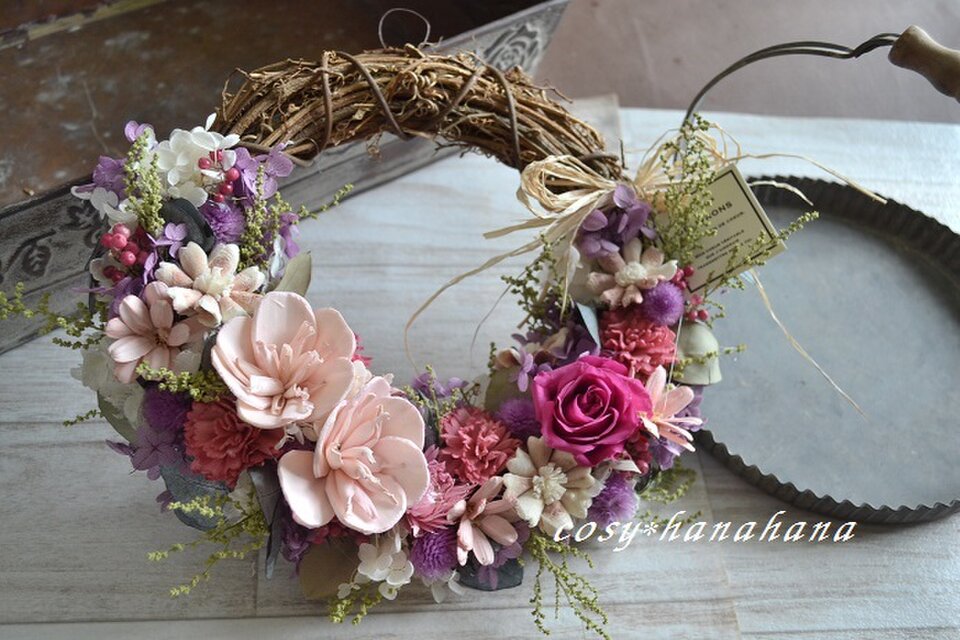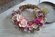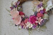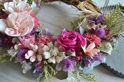 花かごのようなハーフ型のリース。