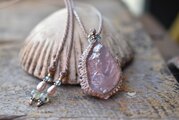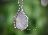 春の色★ローズクォーツ原石マクラメネックレス1010