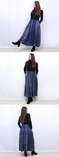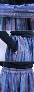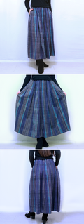 新作☆手織り綿絣ロングスカート、ブルーミックス、オールシーズン
