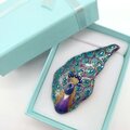 優雅な孔雀をモチーフにしたブローチ。羽を閉じた姿を正面から捉えてデザインしました。
