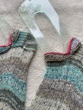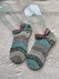 ちなみに竹串か?!ってくらい細い針で編んでるので意外と薄いです。普通の靴下と同じように履けますよ♪