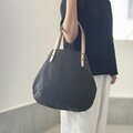 塩縮ナイロンと極厚ヌメを使用した丸型トートバッグです。