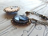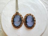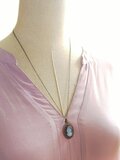 ヴィンテージ 淡いGreyBlue-Frostカメオ(18×13㎜)2重台座クラシカルネックレス
