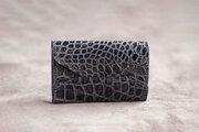 立体感のあるワニ革模様に仕上げたクロコダイルエンボスレザーで作った名刺入れです。