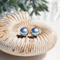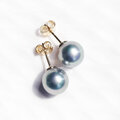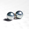 非常に照りのよい高品質な国内産の高級模造真珠の、グレー貝パールを一粒スタッドピアスに。