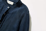 年中活躍可能 リネン100% フリル 長袖シャツ ブラウス インディゴ 230401-1