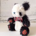 こぎん刺しのパンダのぬいぐるみ タータンチェックでおめかし