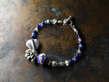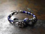 濃紺色のヴェネチアアンティーク薔薇と小花ビーズとボタニカルなカレンシルバー、瑠璃色ビーズ、カイヤナイト、ラブラドライトを繋いだボリュームのあるブレスです。