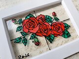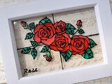 光が当たると、色合いやデザインが優しく反射し、見るたびに新たな楽しみをお届けします。サイズは縦約12cm・横約16cm程度で、ガラス絵の具を使用した薄いアクリルにふんわりとした薔薇が描かれています^^