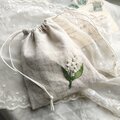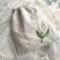 上質のリネン(100%)にすずらんをリボン刺繍した巾着ポーチです。
