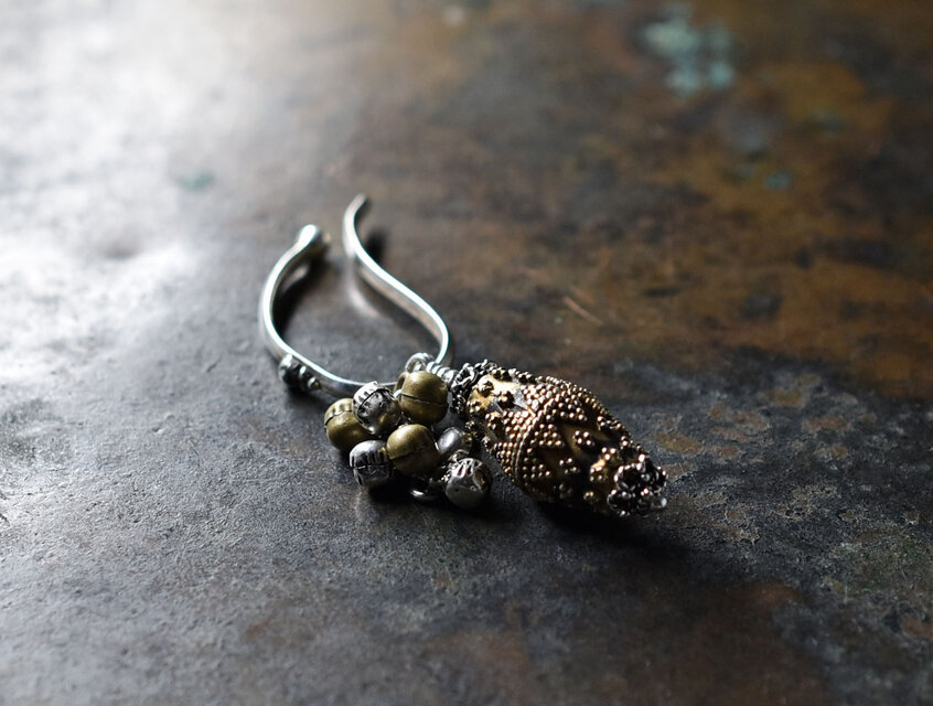 繊細細工のヴィンテージメタルとたわわな鈴のイヤーカフ