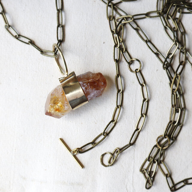 大振りの原石を真鍮の帯でシンプルに留め、印象的なトップになりました。