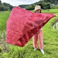 作品のお取引スムーズです。作品は落ち着いた色合いで素敵です。この大きさが首元に巻くのに私にはちょうどいいです。シルク×レーヨンの布地の肌ざわりがとても優しくて好きです。