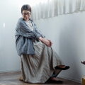 ゆったりとしています。着丈は踝上15cmほどです。アームーホールが広めなので、薄手のニットも重ね着して冬にも使えると思います。ウエストの切替が実際のウエストよりも高い位置にあるので、脚長効果があります。