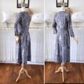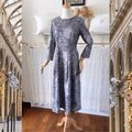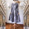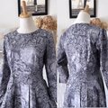 グレーの”トワル・ド・ジュイ” 抑えた華やかさのコットンワンピース『ローウエスト切替・タックスカート・八分袖』