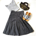 大人気のお色♫ ハーフリネン 大人可愛いタックフレアスカート スチールグレー
