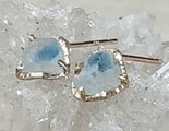 原石中にフワリと浮かぶ鮮やかな青い斑が幻想的*希少なブラジル産ユークレースのアンティーク調K10ピアスです*小粒ながらグッと目を引く極レアストーンをお楽しみ下さい*石座は淡く柔らかい色味のK10を素材にテクスチャーを施したアンティーク調マット仕上げ、ポストキャッチともK10製、脱落し難いシリコンカバーキャッチです*