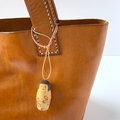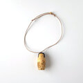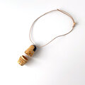 革ひもをつけて、素朴な雰囲気に仕上げています。