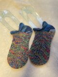 ちなみに竹串か?!ってくらい細い針で編んでるので意外と薄いです。普通の靴下と同じように履けますよ♪