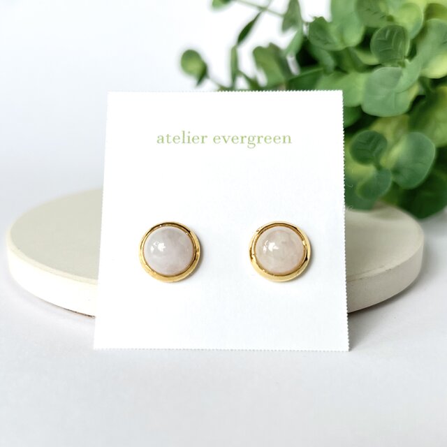 ラベンダー翡翠(ジェダイト)×ゴールド シンプルカボションピアス