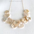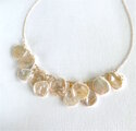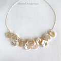 ペールピンクのペダルパールをネックレスの中央部分に並べ、