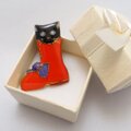 大きめのブローチで人気だった赤いブーツの黒猫を