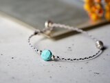 空色のターコイズを一粒繋いだ編み紐ブレスレット