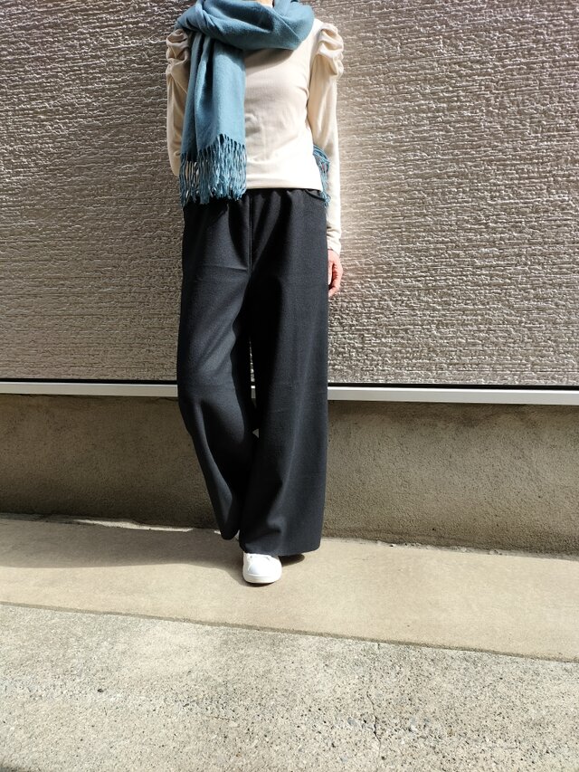 立体裁断ならではのゆったりはいて細く見えるフォルムです。