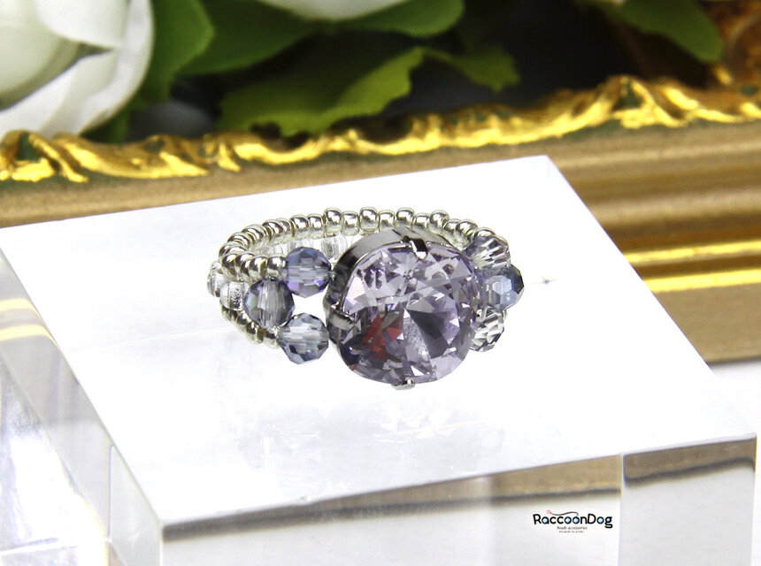 大粒スワロ・スモーキーモーヴ藤色の煌きリング(スワロ ビーズリング)《ビーズアクセサリー》