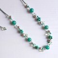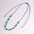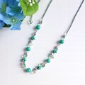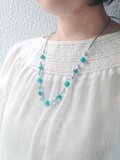 濃色のアマゾナイトと小粒のターコイズ、グリーンフローライト、シルバー染の淡水パールでさわやかカラーのフリーサイズネックレスを作りました。