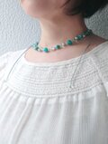 アマゾナイトは8mm玉です。小粒のターコイズはお花のように丸くまとめてみました。